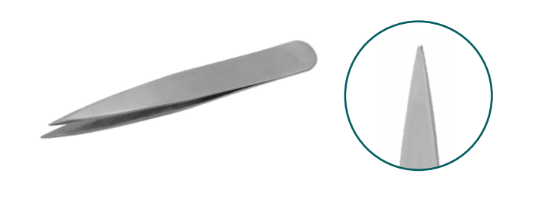 Pince à épiler à mors pointu en acier inoxydable recyclable pour les poils incarnés et les échardes. (Dimensions: 9.5 cm)
