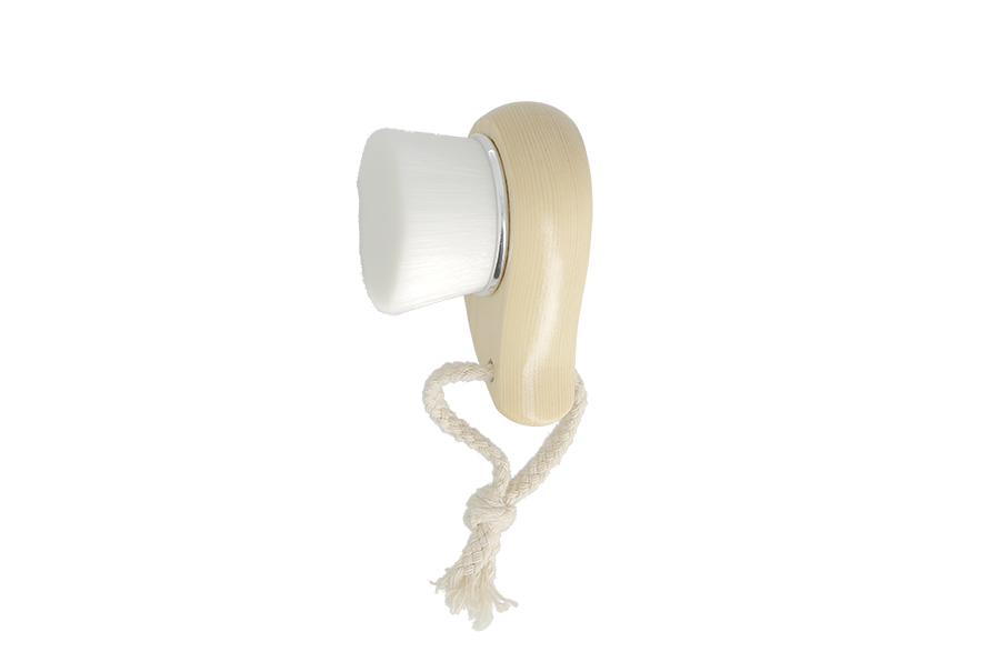 Brosse visage en bois et poils synthétiques. (Dimensions: 8 cm)